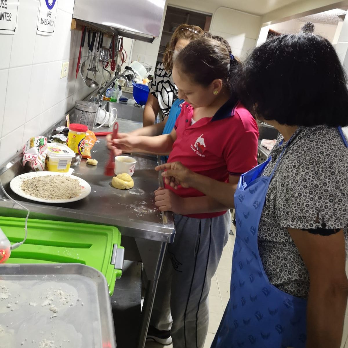 1. Preparación de pan: elaboramos pan juntas para disfrutarlo al día siguiente en el desayuno. Trabajaba con cuatro niñas, y cada una asumía una parte del proceso: cernir la harina, medir los ingredientes, amasar, dar forma, decorar, etc.