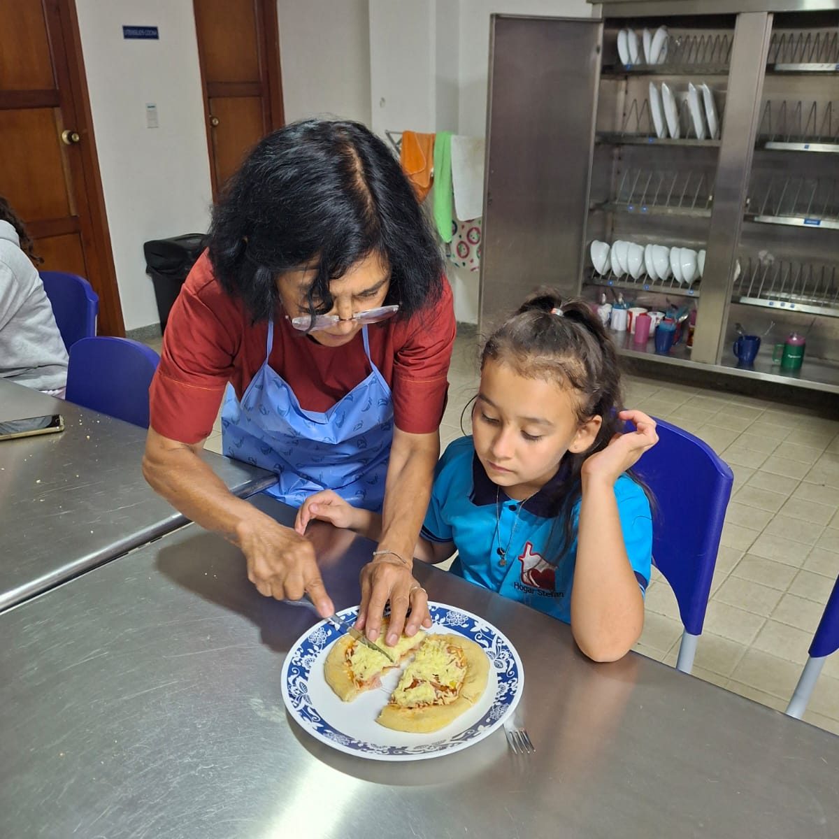 2. Hacer pizza: una vez lista la masa, cada niña preparaba su propia pizza según su gusto.